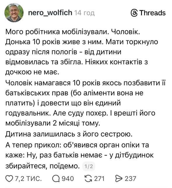Очередная душераздирающая история произошла с участием душегубов ТЦК. Сначала они мобилизовали мужчину, с которым жила 10-летняя дочь.