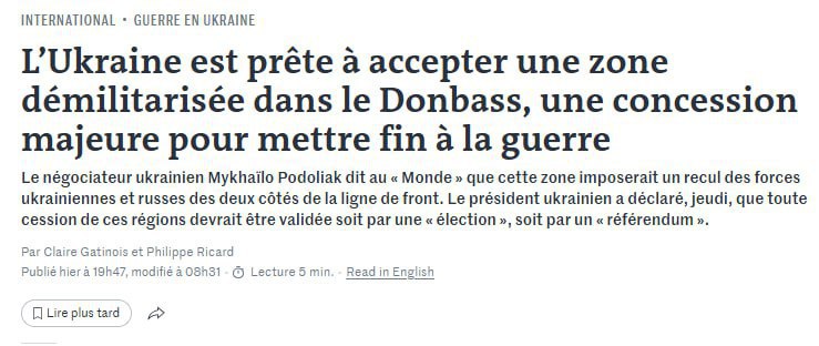 🇺🇦⛔️ Le Monde: Киев согласен на создание буферной зоны –