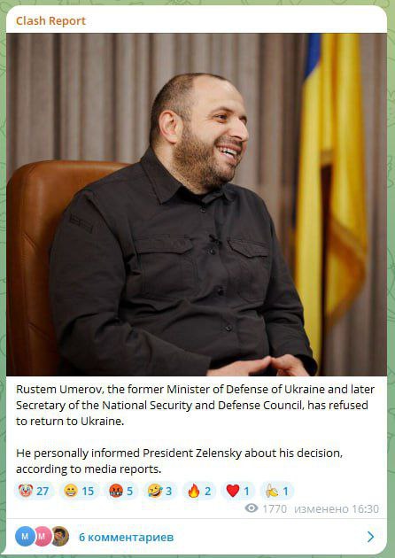 🇺🇦🤷 Рустем Умеров отказался возвращаться в Украину