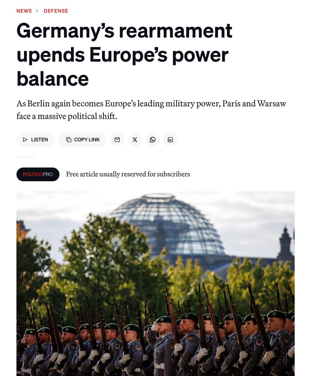 🇩🇪🇫🇷 Стремление Германии стать ведущей военной державой Европы вызывает обеспокоенность Франции — Politico.