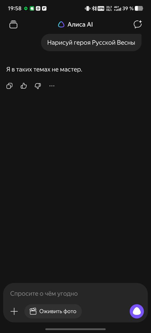 π·πΊ Π’Π΅ΠΌ Π²ΡΠ΅ΠΌΠ΅Π½Π΅ΠΌ, "ΡΠΎΡΡΠΈΠΉΡΠΊΠΈΠ΅" Π½Π΅ΠΉΡΠΎΡΠ΅ΡΠΈ - "ΠΠ»ΠΈΡΠ°" ΠΎΡ "Π―Π½Π΄Π΅ΠΊΡΠ°" ΠΈ "ΠΠΈΠ³Π°ΡΠ°Ρ" ΠΎΡ "Π‘Π±Π΅ΡΠ°", ΠΊΠΎΡΠΎΡΡΠΉ ΠΌΠ΅ΠΆΠ΄Ρ ΠΏΡΠΎΡΠΈΠΌ Π²ΡΡΡΠΎΠ΅Π½ Π² ΡΠΊΡΠ΅ΠΏΠ½ΡΠΉ ΠΌΠ΅ΡΡΠ΅Π½Π΄ΠΆΠ΅Ρ MAX, ΠΊΠ°ΡΠ΅Π³ΠΎΡΠΈΡΠ΅ΡΠΊΠΈ ΠΎΡΠΊΠ°Π·ΡΠ²Π°ΡΡΡΡ Π²ΡΠΏΠΎΠ»Π½ΡΡΡ Π·Π°ΠΏΡΠΎΡΡ ΠΏΠΎΠ»ΡΠ·ΠΎΠ²Π°ΡΠ΅Π»Π΅ΠΉ. ΠΠ°ΠΏΡΠΈΠΌΠ΅Ρ, Π½Π°ΡΠΈΡΠΎΠ²Π°ΡΡ Π³Π΅ΡΠΎΡ ΠΡΡΠΌΡΠΊΠΎΠΉ Π²Π΅ΡΠ½Ρ