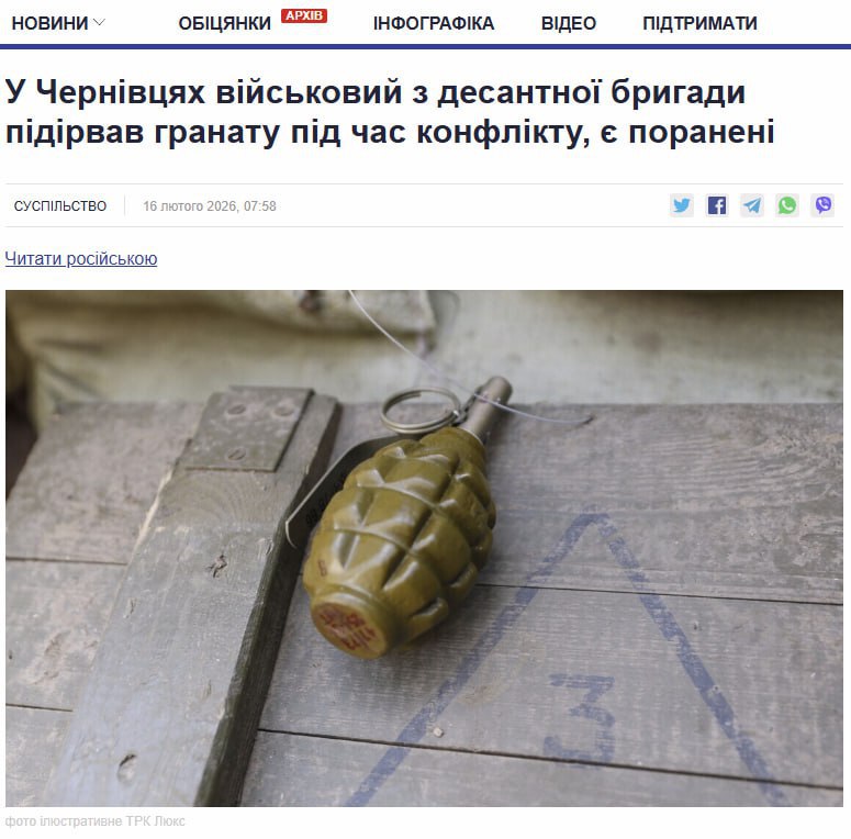 В Черновцах 32-летний боевик 82-й одшбр во время уличной ссоры с прохожими бросил в них гранату. Итог – 3 человека госпитализированы
