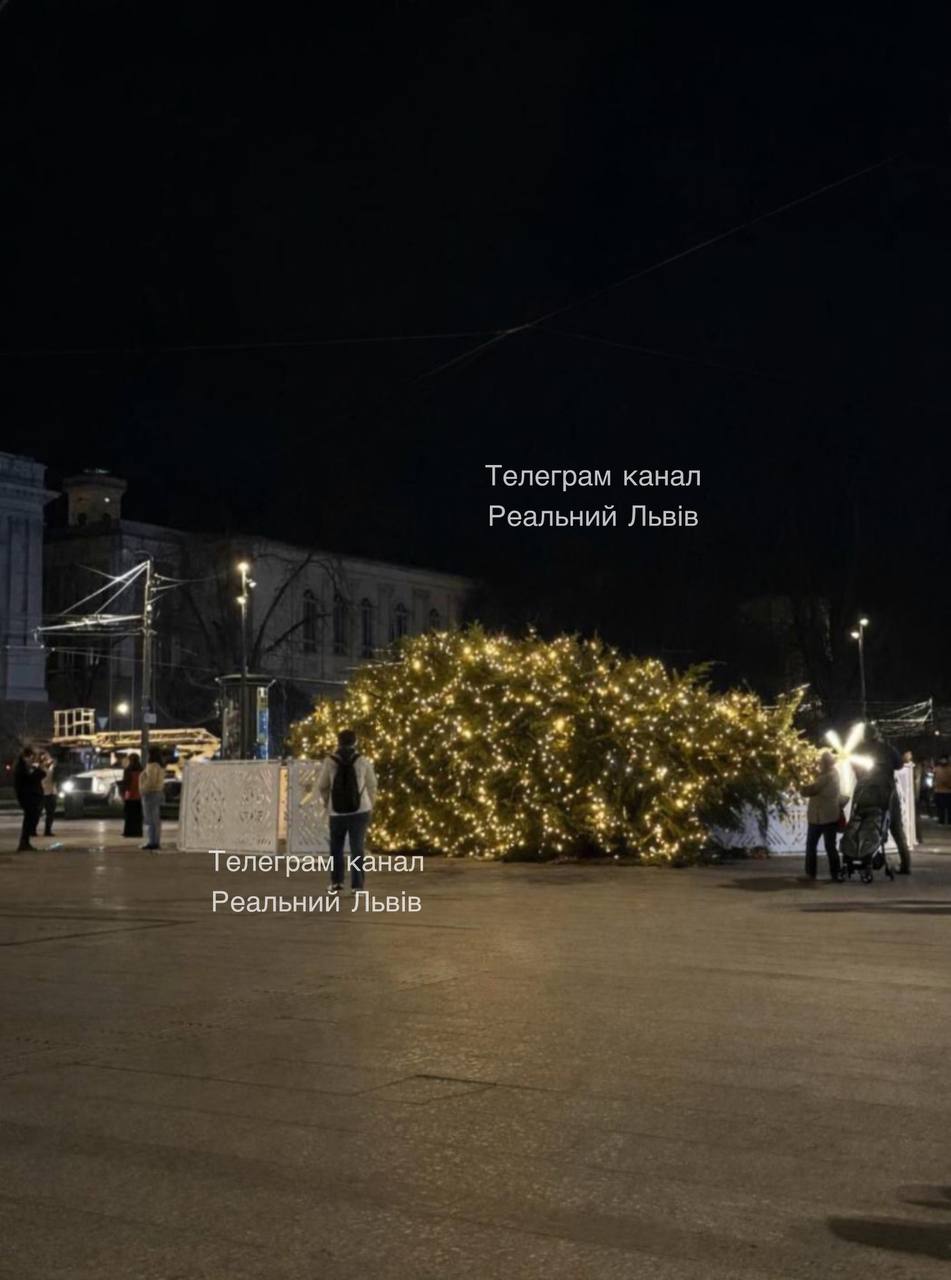 🎄 Во Львове упала главная йол... смерека города
