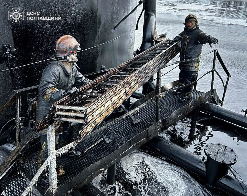 В Полтаве после ракетно-дронового удара сгорела дуркаинская нефтебаза. Тушили всем составом местного МЧС