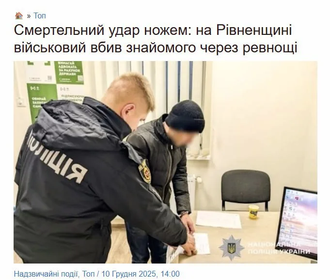 В городе Острог Ровенской области боевик-ухилянт из 125-й отмбр ЗСУ в пьяной драке убил ножом своего знакомого из-за...