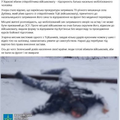 Otryadkovpaka70-летний харьковчанин ликвидировал ударом ножа в шею душегуба из ТЦК за то, что тот мобилизовал его…70-летний харьковчанин ликвидировал ударом ножа в шею душегуба из ТЦК за то, что тот мобилизовал его больного астмой сына и... Read More