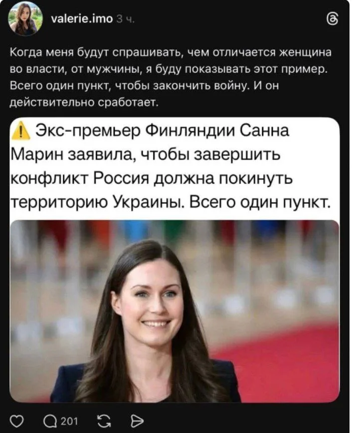 🇺🇦🤡🇫🇮 Экс-премьео Финляндии предложила свой план из одного пункта.