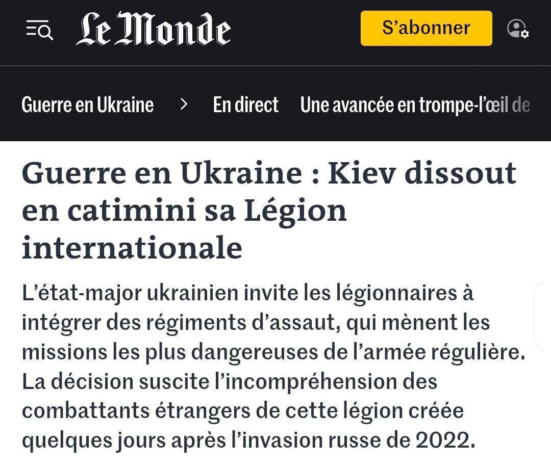 🇺🇸🇺🇦 Le Monde: Иностранных наёмников оскорбило решение командования ВСУ расформировать Интернациональный легион и пер...