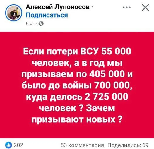 🇺🇦🗣 Весьма красноречивая реакция украинских подписчиков на заявление Зеленского о 55 тысячах погибших украинских боев...
