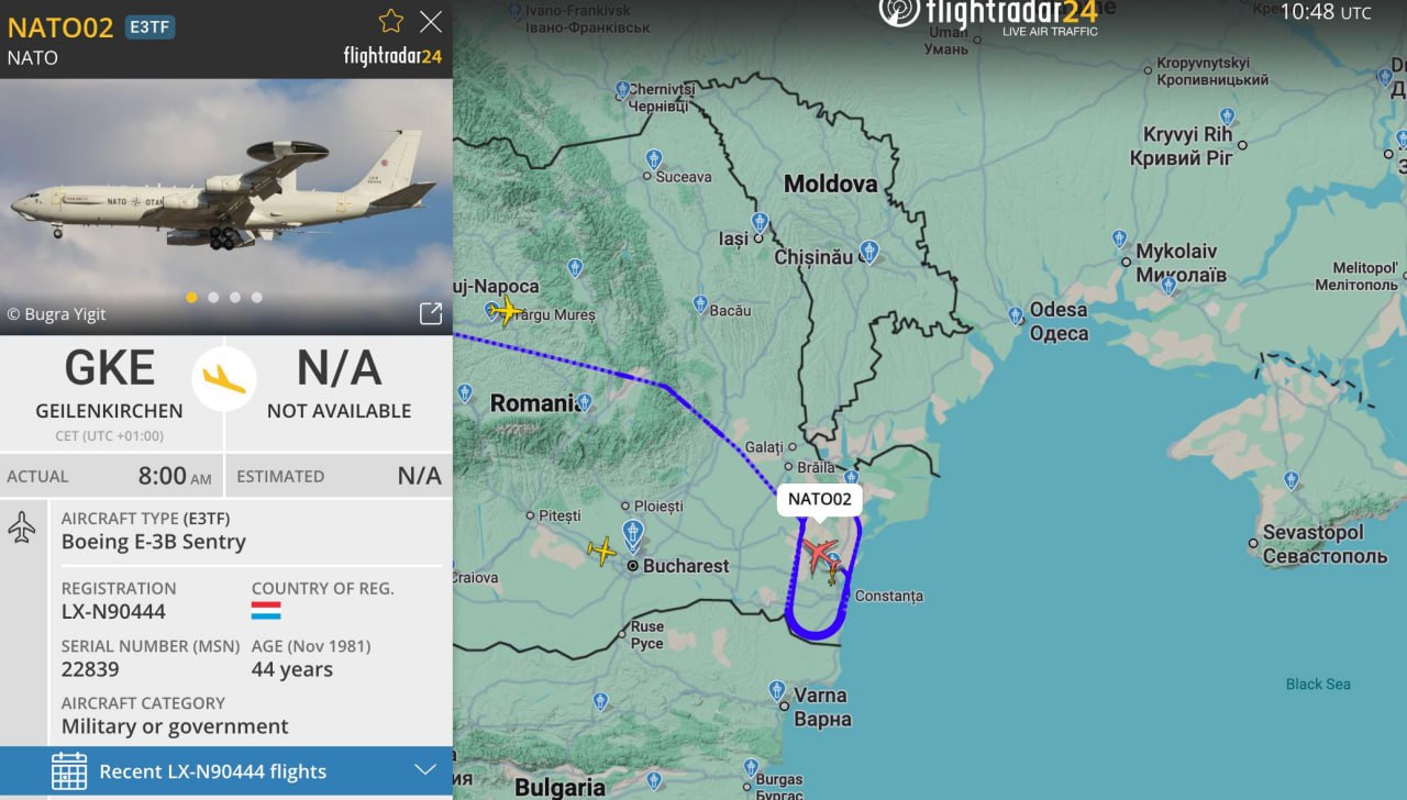 ⚡️🇷🇴✈️ Тем временем, вдоль побережья Чёрного моря над территорией Румынии зафиксирована активность НАТОвского борта А...