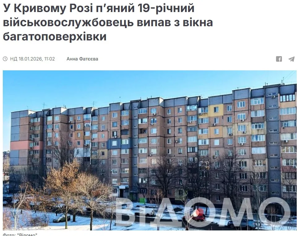 В Кривом Роге пьяный 19-летний боевик 157-й омбр ЗСУ выпал из окна