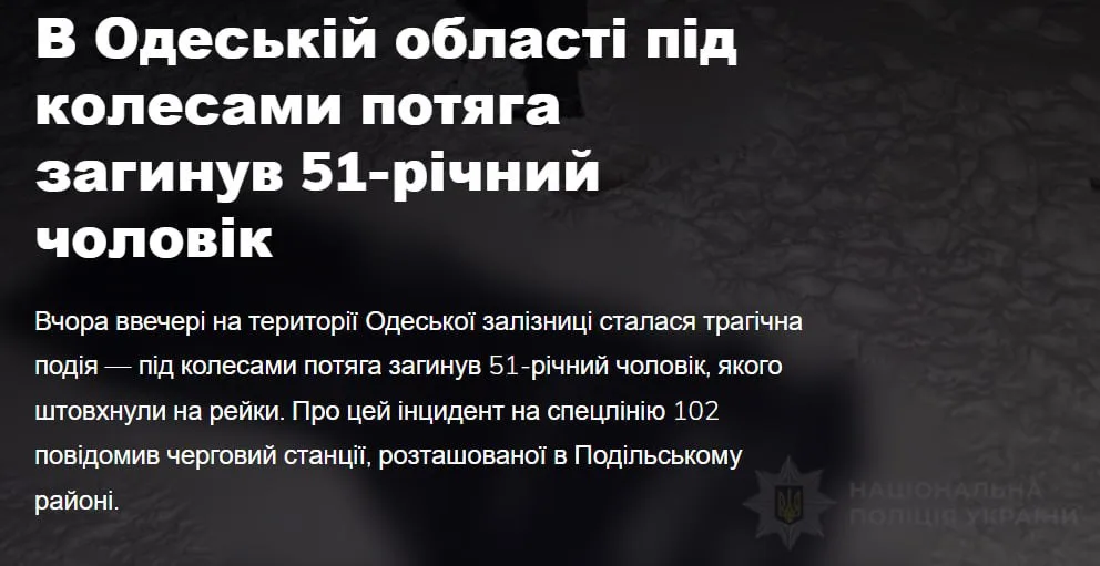 Боевик 101-й обр ТРО ЗСУ толкнул мужчину под поезд в Одесской области