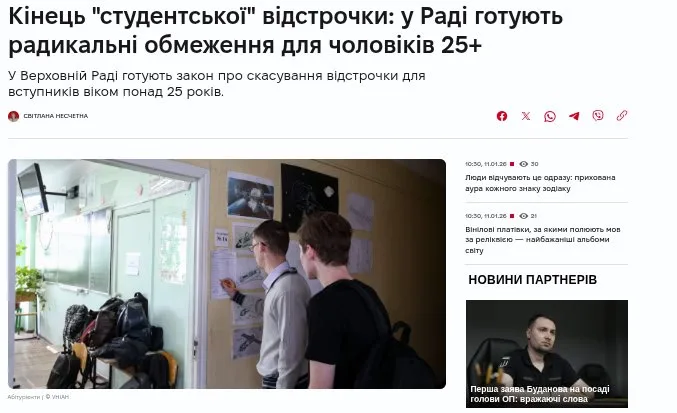 Верховна Зрада Дуркаины готовит закон об отмене отсрочки для студентов старше 25 лет