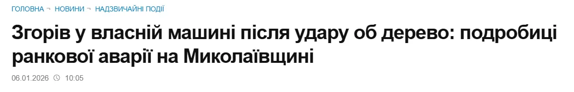 Боевик из 56-й омпбр сгорел в своём топливозаправщике в Николаевской области