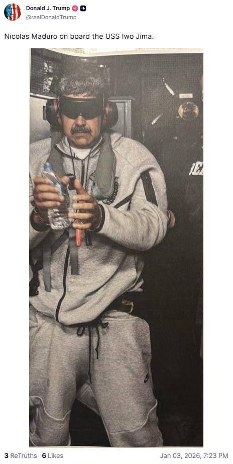 ❗️Трамп опубликовал первое фото Мадуро после задержания