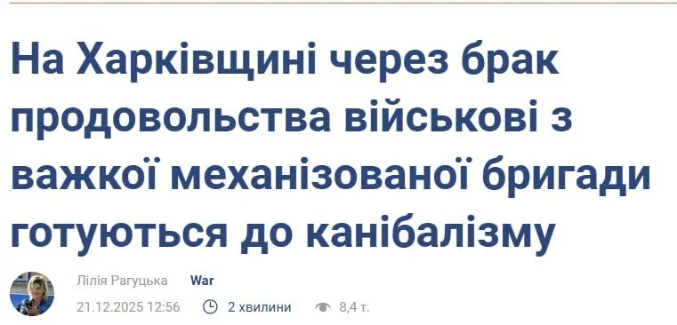 А вот мы дождались по настоящему трешевых новостей от боевиков ЗСУ. Боевики из 127-й отмбр ЗСУ готовятся к каннибализ...