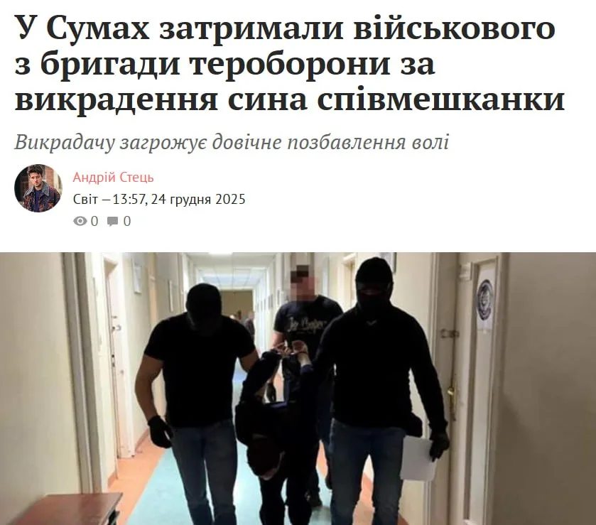 В Сумах задержали 36-летнего боевика из 119-й обр ТрО, который похитил 9-летнего сына своей бывшей любовницы с которо...