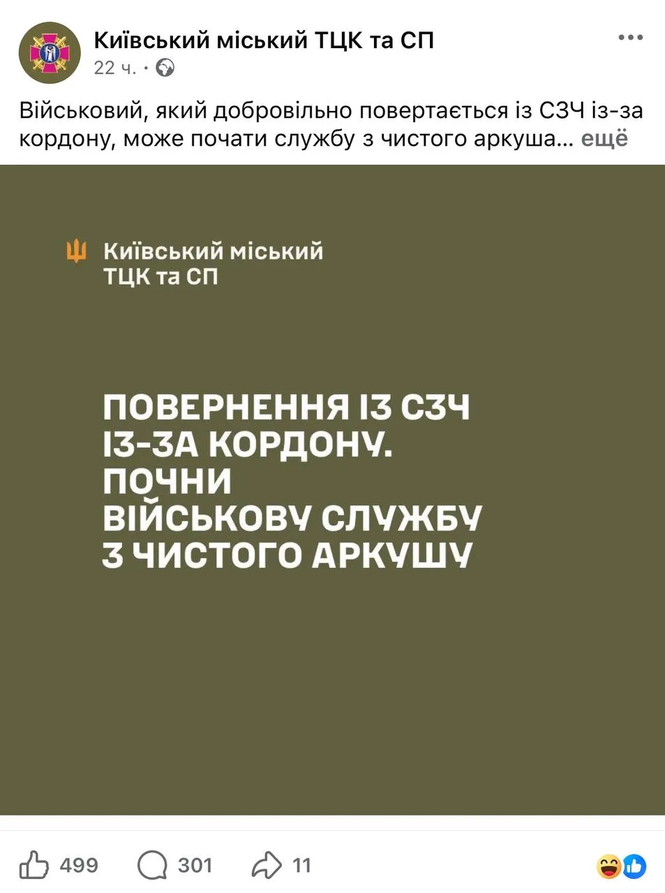 🇺🇦🤦 Пресс-служба ТЦК по Киевской области обратилась к СЗЧшникам, покинувшим Украину