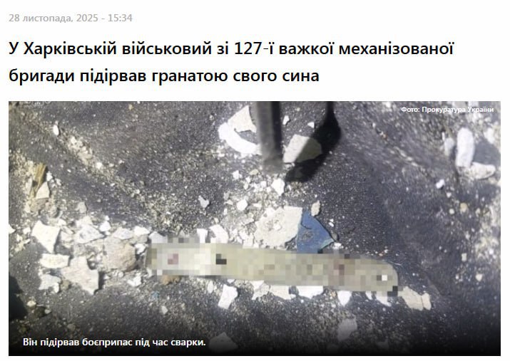 В Харьковской области боевик ЗСУ из 127-й отмбр взорвал осколочной гранатой себя и своего сына