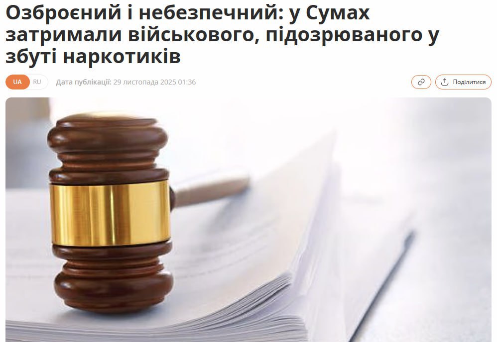 В Сумах задержали 38-летнего сержанта – боевика из 41-й омбр ЗСУ за сбыт наркотиков среди других боевиков